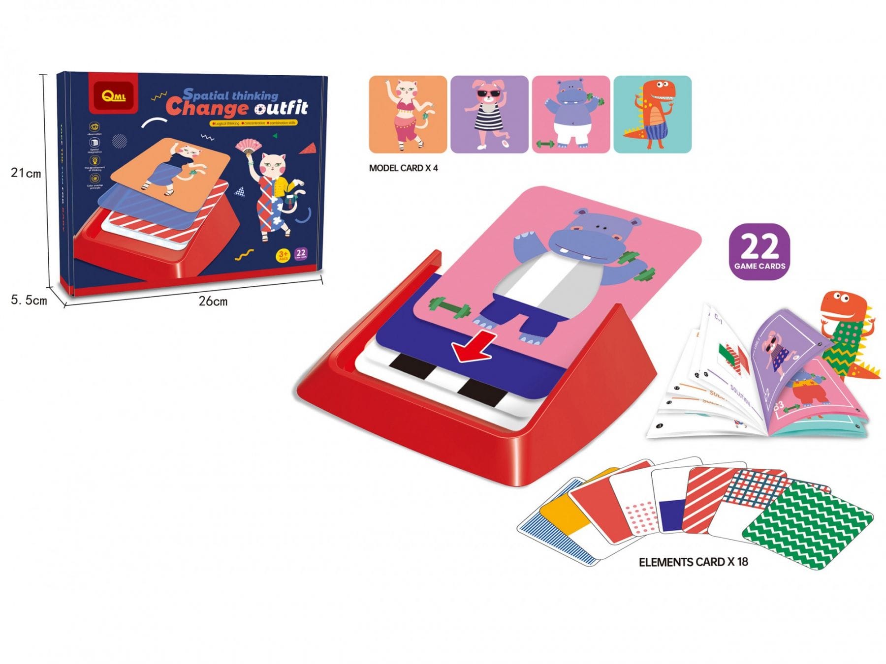 У комплекті: ігрова підставка, 4 трафарети, 18 карток з візерунками та буклет із завданнями.
