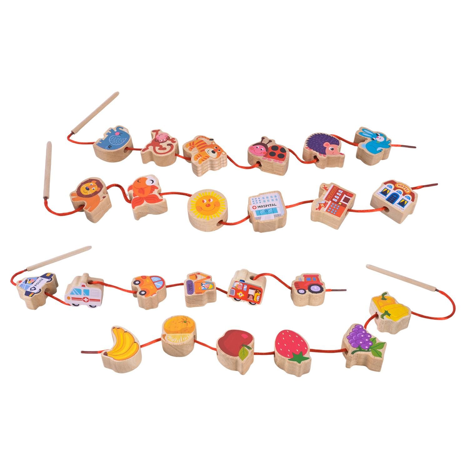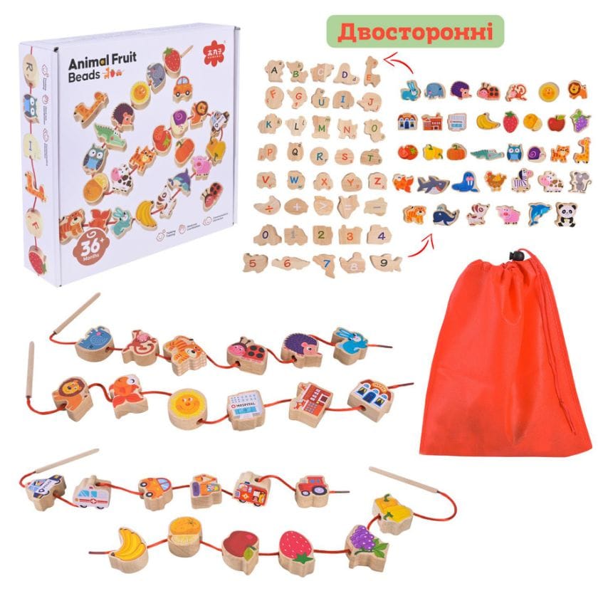 Гра-шнурівка – це відмінна іграшка для маленьких пальчиків: нанизування елементів на кольорові шнурочки відмінно тренує дрібну моторику рук, пришнуровання деталей до дерев’яній основі удосконалює координацію рухів, а велика кількість можливих комбінацій елементів і їх розташування на основі розвиває уяву, образне мислення. Гра заохочує дитину отримати результат, спонукає концентрувати увагу, зосереджуватися, виховує стриманість.