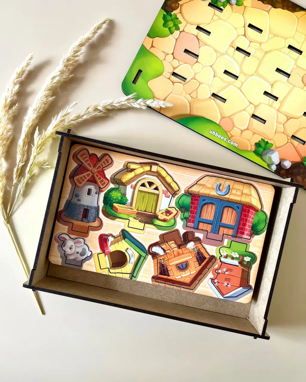 Розміри: 16 х 23 х 5 см. У наборі: ящик для зберігання та гри, 47 деталей, 12 двосторонніх карт-схем.