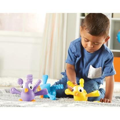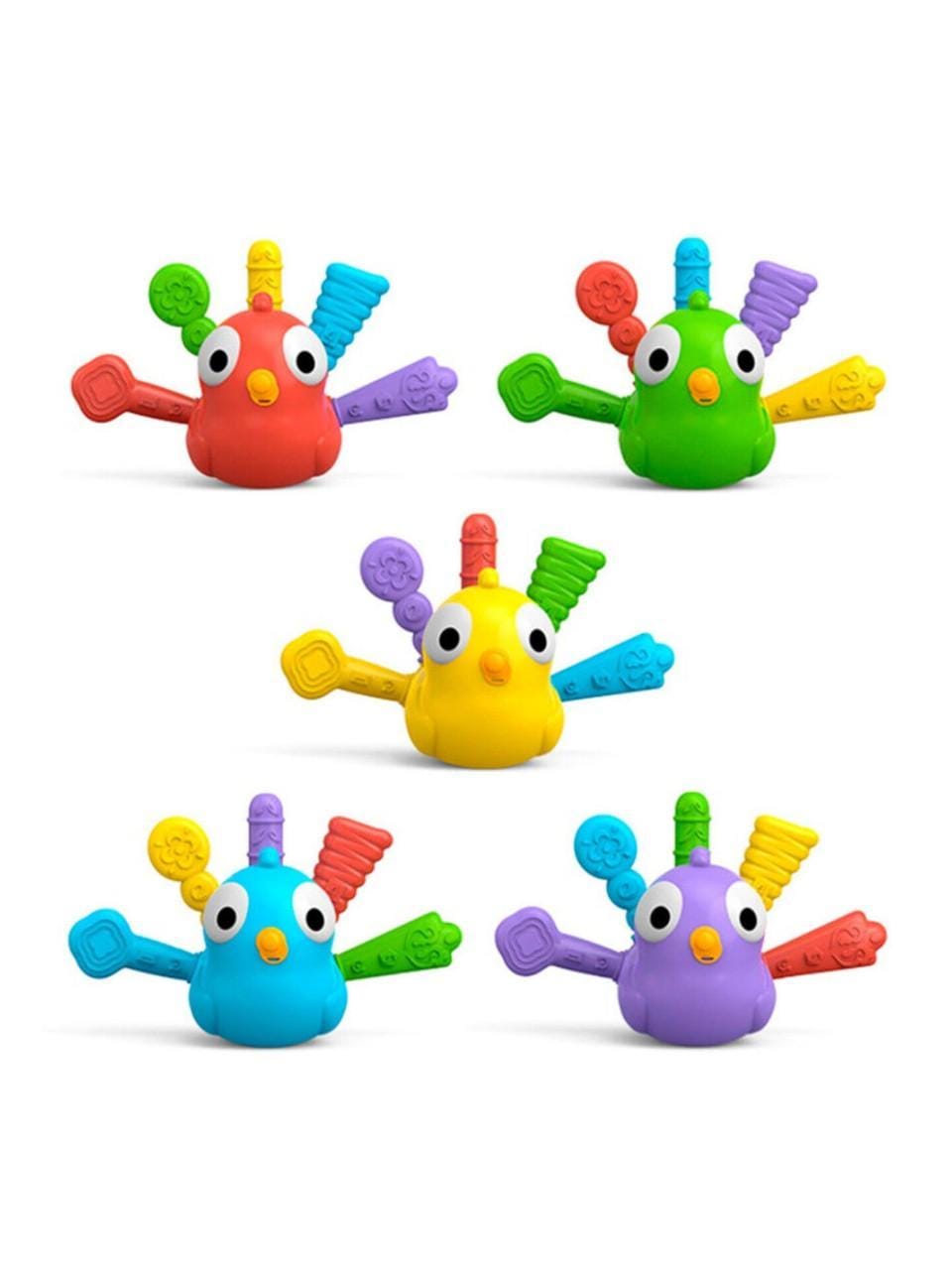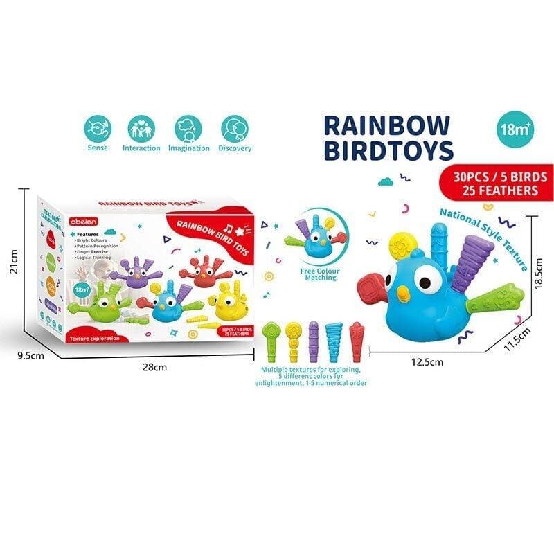 Логічна гра-сортер у вигляді пташок містить основи-пташки та набір пір’їн різних кольорів і текстур. Дитина вставляє пір’їнки в отвори пташок, тренуючи дрібну моторику й навички сортування. Контрастні кольори та фактурні елементи сприяють сенсорному розвитку. Підходить дітям від 18 місяців.