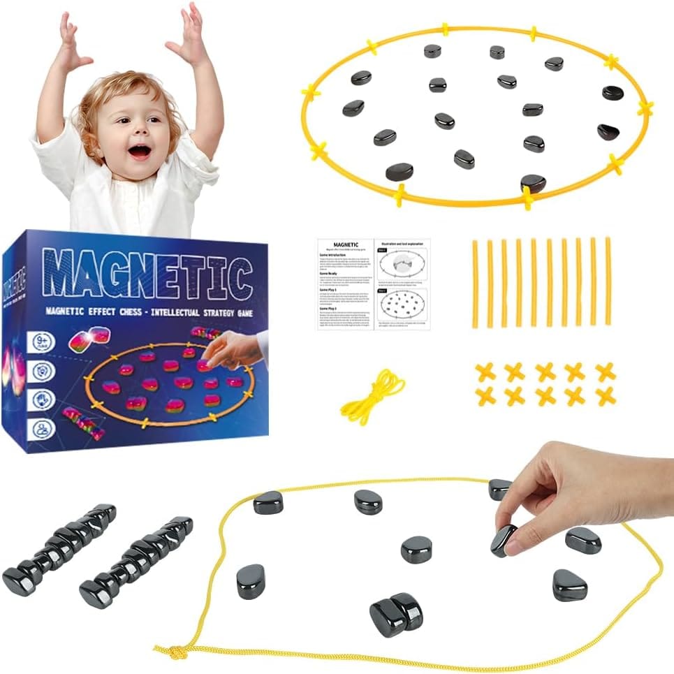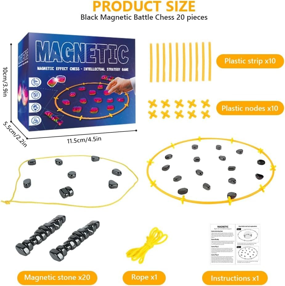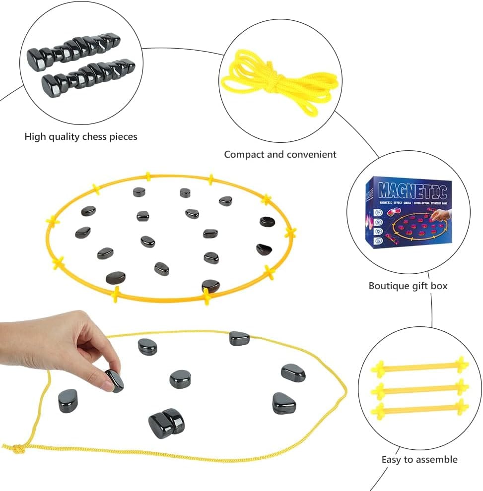 Правила елементарні – магнітні камінці порівну розподіляються між кількістю гравців (усього магнитів 20). Задача кожного гравця по черзі розміщувати камінець-магніт усередині ділянки, яка обмежена шнуром.