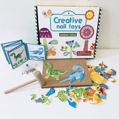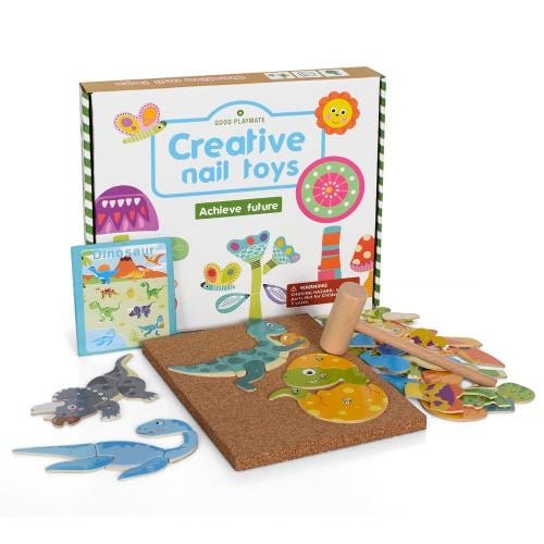 До складу входять коркова основа, молоточок, цвяхи, яскраві деталі з різної форми та інструкція з картинками-прикладами.