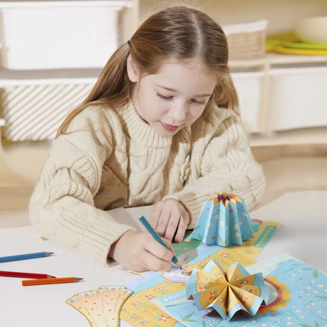Цей набір розвиває художні здібності дітей, дрібну моторику та просторове мислення. Ідеально підходить для створення закладок або прикрас.