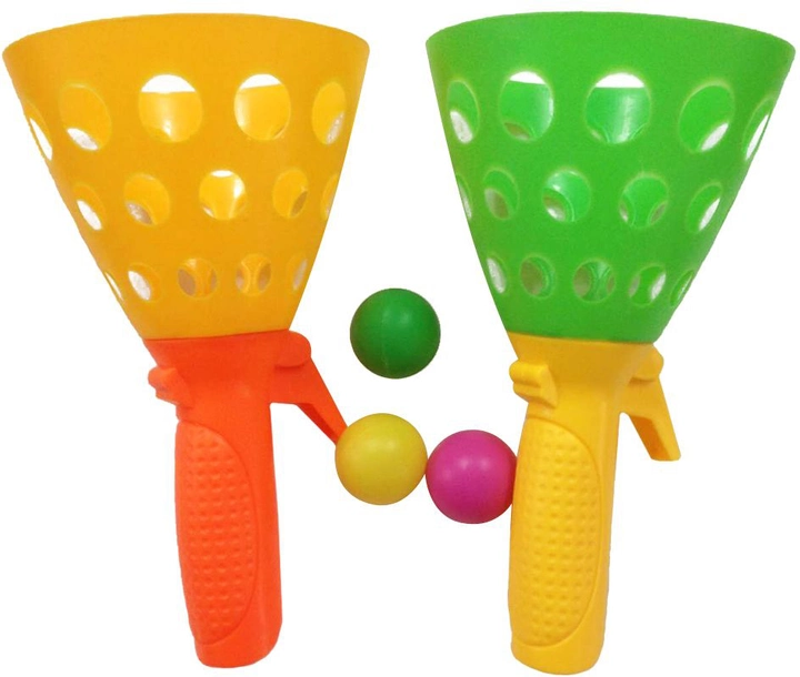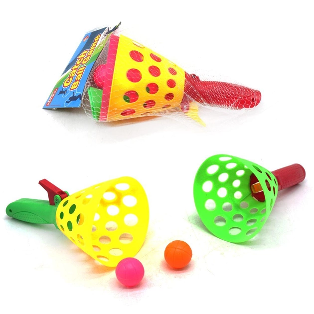 Чудовий набір для гри «Спіймай м’яч» для хлопчиків і дівчаток. У нього входять дві не дуже великі конусоподібна кошика і три м’ячика. Необхідно покласти м’ячик в корзину і натиснути на кнопку, щоб він з неї вистрибнув, а потім цим же кошиком його ловити. Гра дуже незвичайна, рухлива, весела і неймовірно захоплююча. У неї зможуть грати хлопці вже з трьох років і старше. Малюки навчаться кращої координації рухів, уважності, адже вони повинні будуть стежити за м’ячиком, щоб його зловити. Веселі та рухливі ігри позитивно впливають на фізичний і емоційний розвиток дитини. Деталі набору пластикові, вони легкі і безпечні. Така чудова ігра підходить для всієї сім’ї. Тепер дозвілля вашої дитини буде проходити ще більш цікаво і цікаво, разом з ігровим набором «Злови м’яч» .