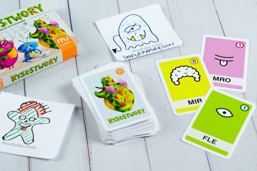 Візьміть аркуш паперу, олівець, намалюйте картки, намалюйте власного монстра та назвіть його. Ви можете вимовити його ім’я? А може для різноманітності пограємо в … стирання монстра? малювати? Або ми допоможемо монстрам, які втратили частини тіла, знову зібратися? Є цілих 9 варіантів розваг!