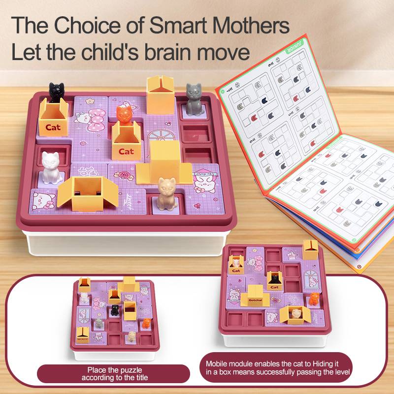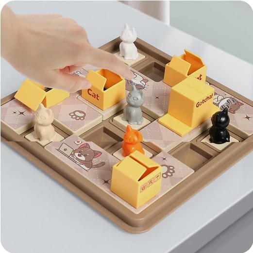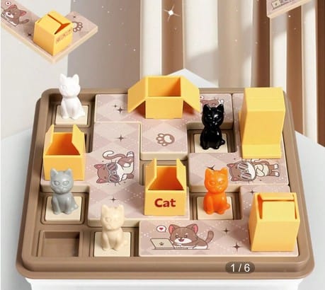 Пересувайте частини пазла знову і знову, поки всі коти не опиняться в коробках.