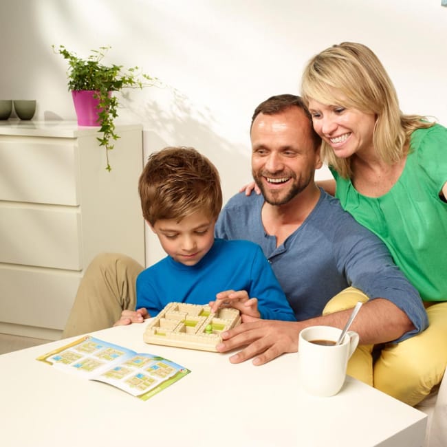 У наборі ти знайдеш пластикове поле, де необхідно буде розкласти деталі згідно з завданнями в буклеті. Всього завдань – 60.