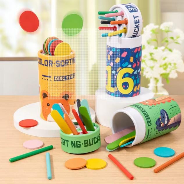 Сортувальні банки BUCKET (3+ років) — розвиваючі ігри, які допоможуть дитині весело й корисно тренувати мислення, увагу, дрібну моторику та знання кольорів.