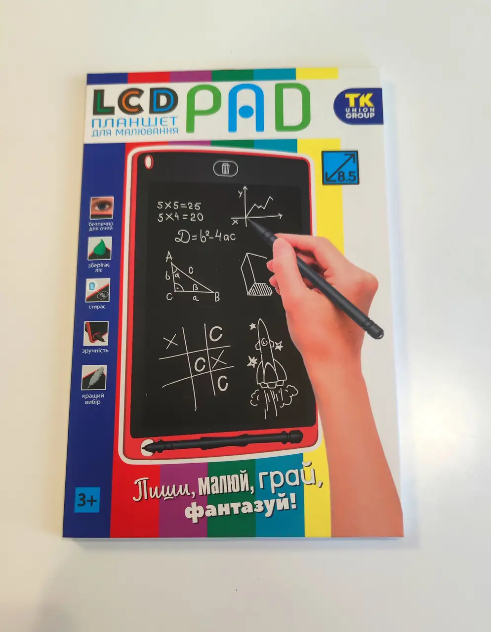 Планшет LCD для малювання стане відмінним рішенням відразу для декількох проблем. Це ідеальний варіант для подарунка дітям, адже на ній можна малювати що завгодно, так само планшет зручно використовувати для візуалізації будь-яких ідей або він може стати дошкою обміну «кухонними» записками з вашими членами сім’ї.