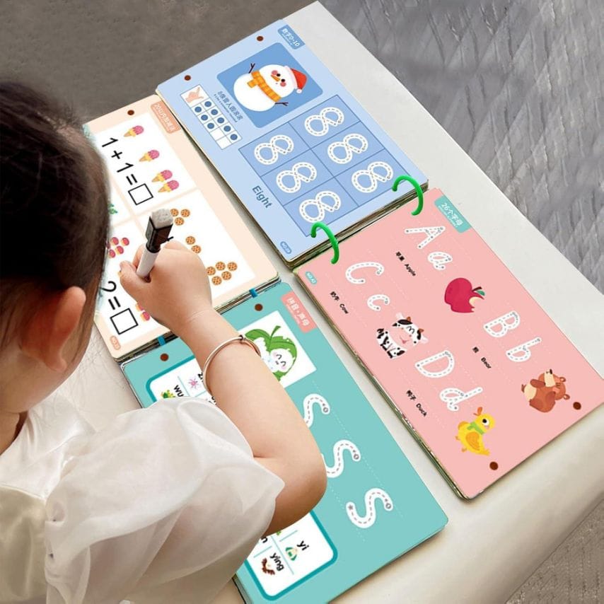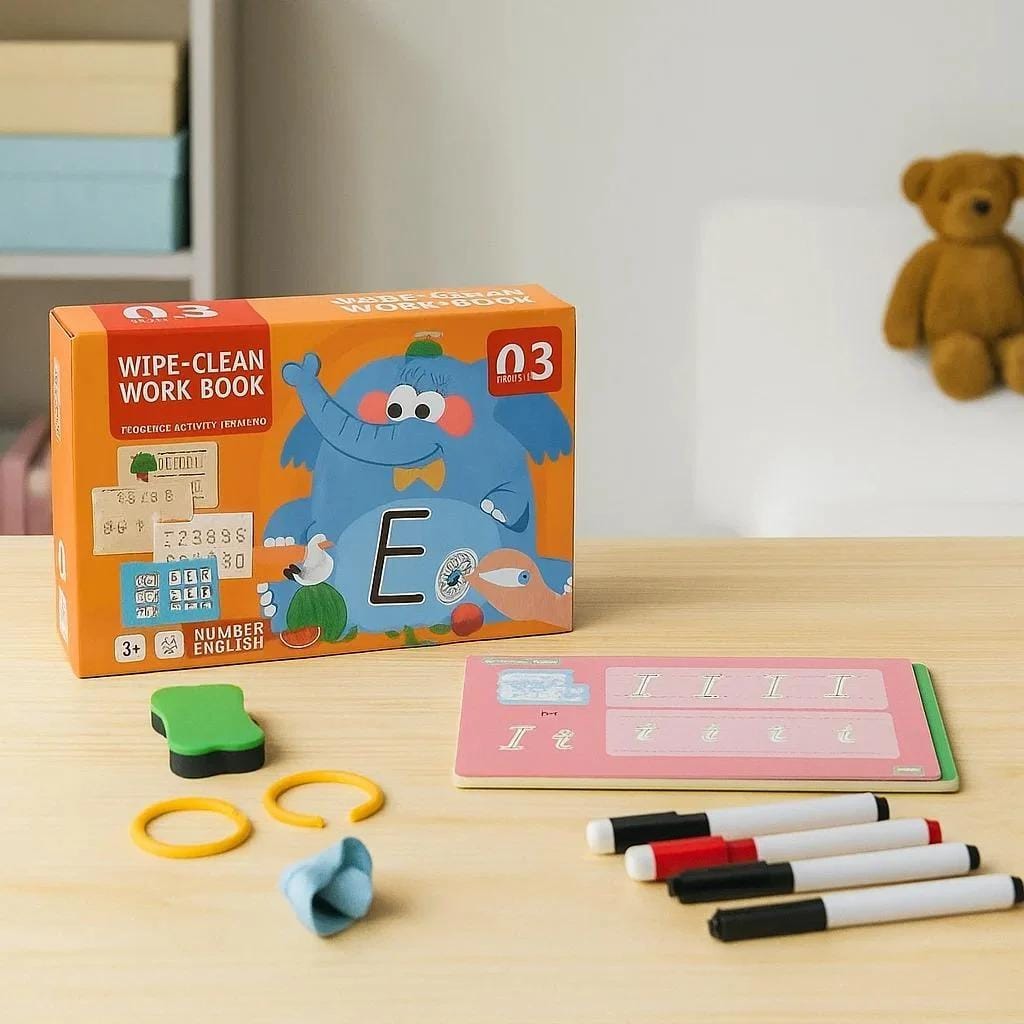 Зручний і практичний набір для занять Зошит формату 21.7х14.7х5.3 см зручно брати з собою в дорогу або використовувати вдома. До комплекту входять два маркери, стиральна гумка, наліпки для заохочення успіхів, а також картки з сертифікатами для нагород. Усі сторінки багаторазові – можна малювати та прати, що робить набір довговічним і практичним для багаторазових занять. Розвиток навичок через гру Завдяки захопливим завданням.